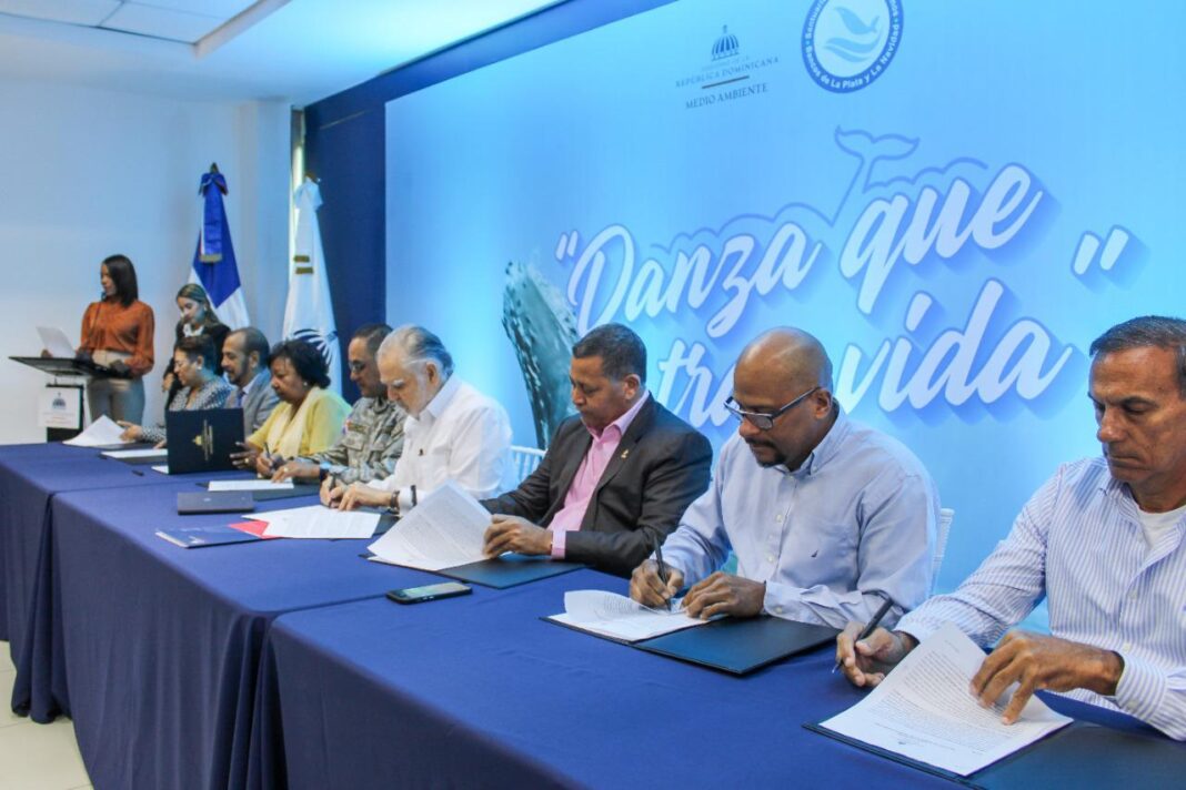 SANTO DOMINGO.- El Ministerio de Medio Ambiente y Recursos Naturales anunció este lunes el inicio de la temporada de observación de ballenas jorobadas (Megaptera novaeangliae) 2023: “Danza que trae vida”, y firmó una alianza interinstitucional para el correcto manejo y desarrollo de la actividad ecoturística y mejorar la gestión en el Santuario de Mamíferos Marinos Banco de la Plata y La Navidad, además de la Bahía de Samaná.