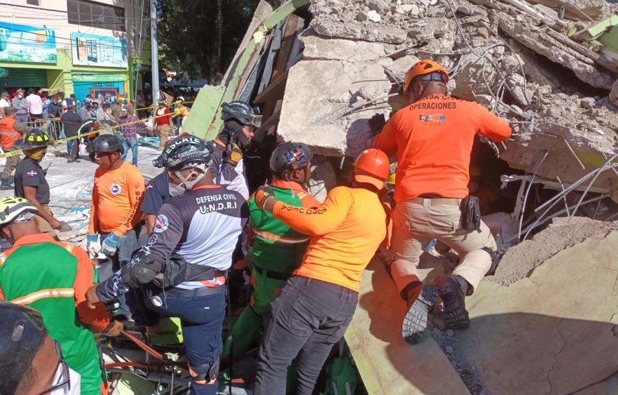 Una embarazada figura entre las dos personas que permanecen entre los escombros tras el desplome del edificio que albergaba una mueblería en La Vega, que se registró al mediodía de este miércoles.